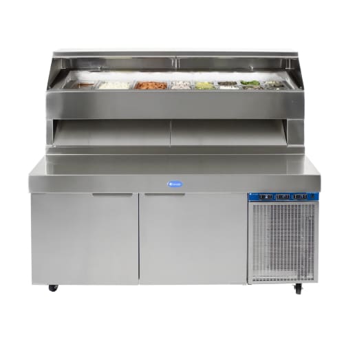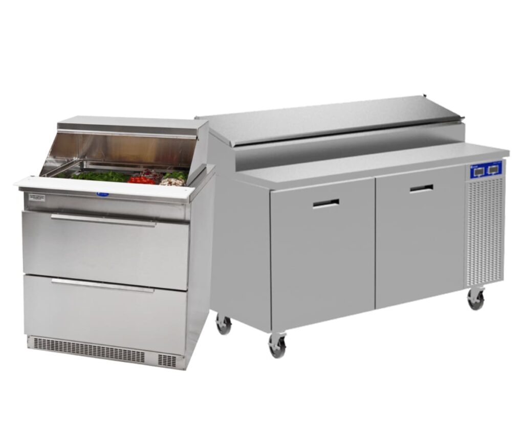 Ideal for chefs crafting pizzas, sandwiches, or meals, these prep tables combine refrigeration with convenient workspace to streamline food preparation.